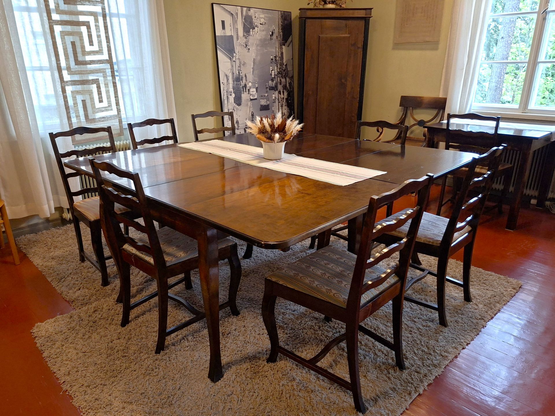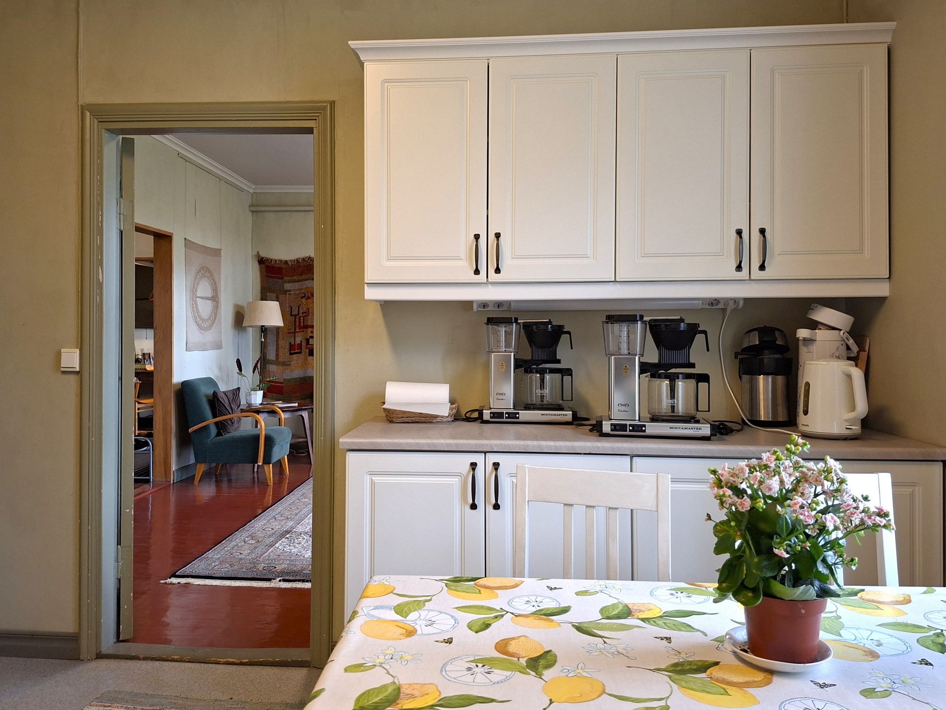 I nedre våningen finns två stora rum och kök, i övre våningen tre rum. Till utrustningen hör modern mötesteknik och kök med kärl.