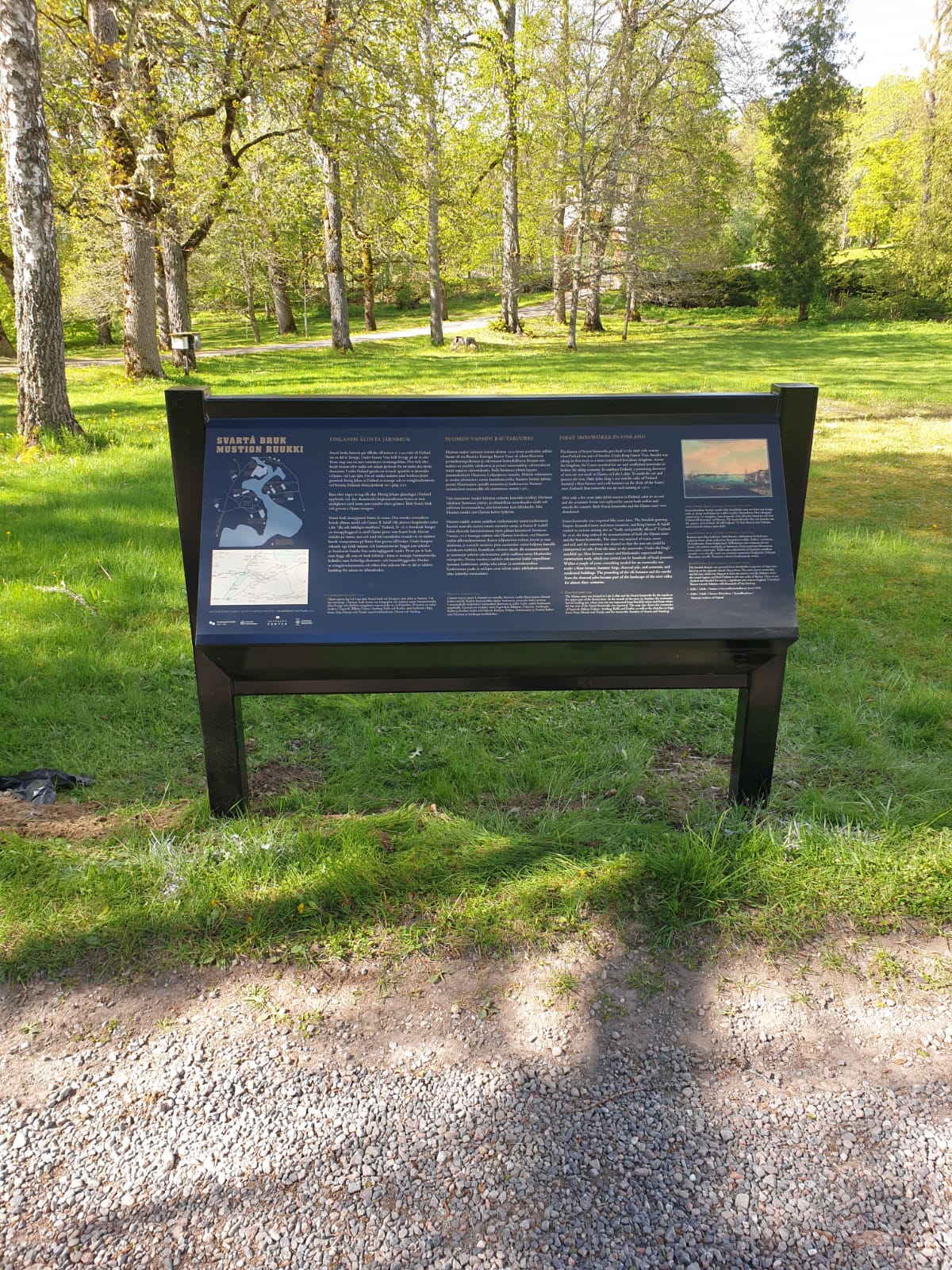 Genom sju vackert utformade skyltar runt om i parken kan besökarna nu ta del av utställningen som behandlar historien i Svartå bruk från 1500-talet till våra dagar.