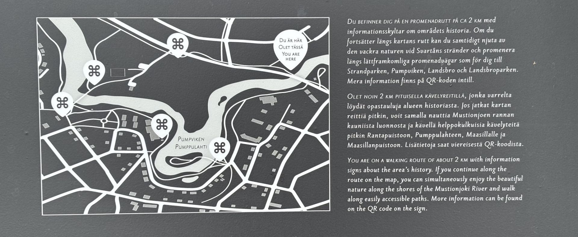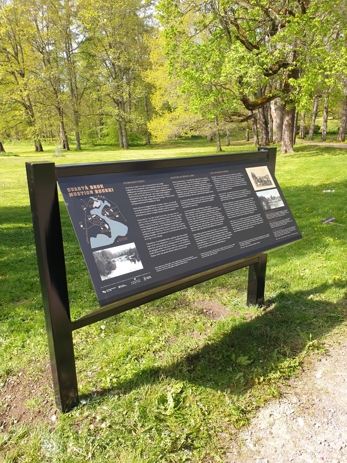 Genom sju vackert utformade skyltar runt om i parken kan besökarna nu ta del av utställningen som behandlar historien i Svartå bruk från 1500-talet till våra dagar.
