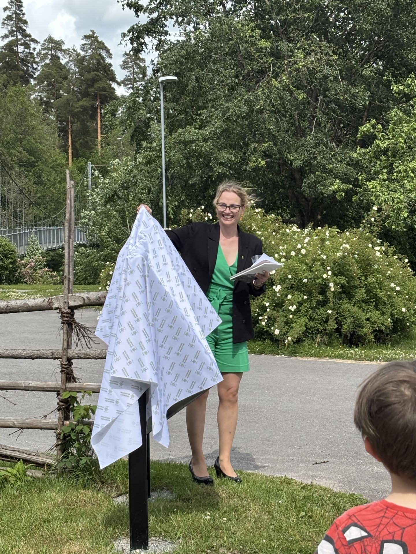 Stadsdirektör Petra Theman invigde rutten vid Antkärrgården. Hon talade främst om hembygdskärlek och vilken betydelse den har för trivseln. Hon tackade den aktiva gruppen som åstadkommit de informativa tavlorna. Rutten runt Pumpviken är ca 2 km lång och går i lätt terräng. Som guider fungerade Minna Lapinniemi (finska) och Göran Fagerstedt (svenska).